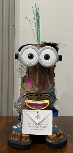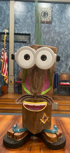 UNCLE KIMO WAS BORN ON OCTOBER 1, 2021, IN KONA LODGE IN THE SPIRIT OF FRIENDSHIP AND BROTHERLY LOVE. НЕ WAS HAND CRAFTED BY WORSHIPFUL BROTHER CARY COPE PM. UNCLE KIMO'S DUTIES IS TO BRING FELLOWSHIP, BROTHERLY LOVE, AND VISITATION TO ALL MASONIC LODGES THAT HE VISITS. HE WILL STAY WITH THAT LODGE UNTIL HE IS BROUGHT BACK TO HIS HOME LODGE IN A TIMELY MANNER. HE SHOULD BE DISPLAYED IN THE EAST.